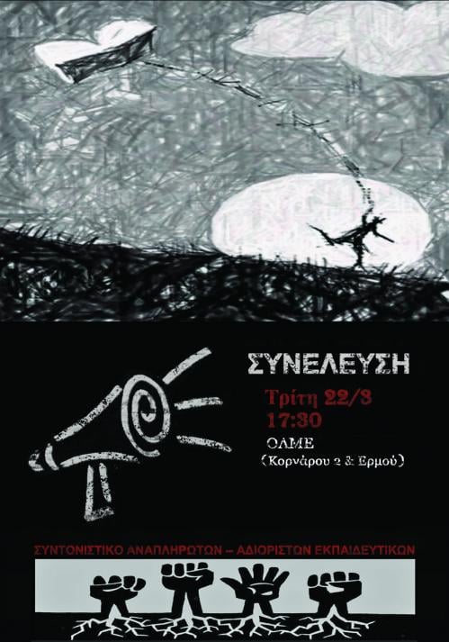 ΣΥΝΕΛΕΥΣΗ ΣΥΝΤΟΝΙΣΤΙΚΟΥ ΑΝΑΠΛΗΡΩΤΩΝ – ΑΔΙΟΡΙΣΤΩΝ ΕΚΠΑΙΔΕΥΤΙΚΩΝ/ΤΡΙΤΗ 22/3, 17:30, ΟΛΜΕ Τρίτη 22-3-2016 στις 5.30 μ.μ. Συνέλευση του Συντονιστικού Αναπληρωτών-Αδιόριστων Εκπαιδευτικών στα γραφεία της ΟΛΜΕ (Κορνάρου 2 & Ερμού) Καμιά παρουσία δεν...