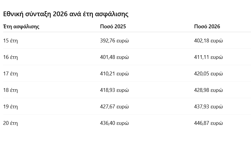Νέες συντάξεις το 2026 ανά ασφαλιστικό φορέα