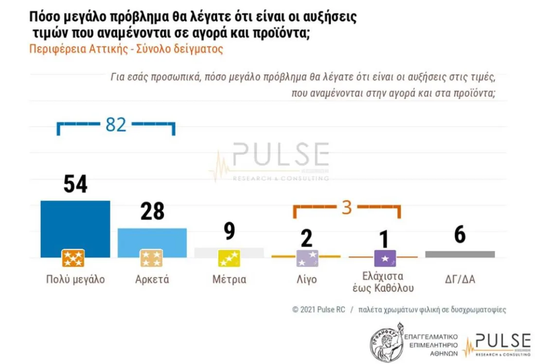 Από την έρευνα της Pulse RC βγαίνει το συμπέρασμα, πώς καταναλωτές και επιχειρήσεις αξιολογούν ως μεγάλο πρόβλημα στην αγορά αλλά και την οικονομία τις ανατιμήσεις των προϊόντων.