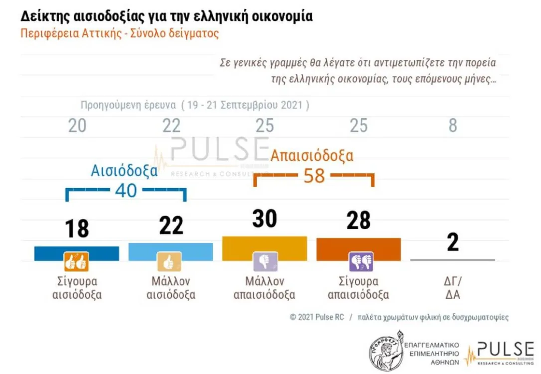 Ενδιαφέροντα είναι τα αποτελέσματα που προκύπτουν από την μεγάλη εξαμηνιαία διερεύνηση του γενικού πληθυσμού της Περιφέρειας Αττικής, από την Pulse RC σε συνεργασία και για λογαριασμό του Επαγγελματικού Επιμελητήριου Αθηνών.