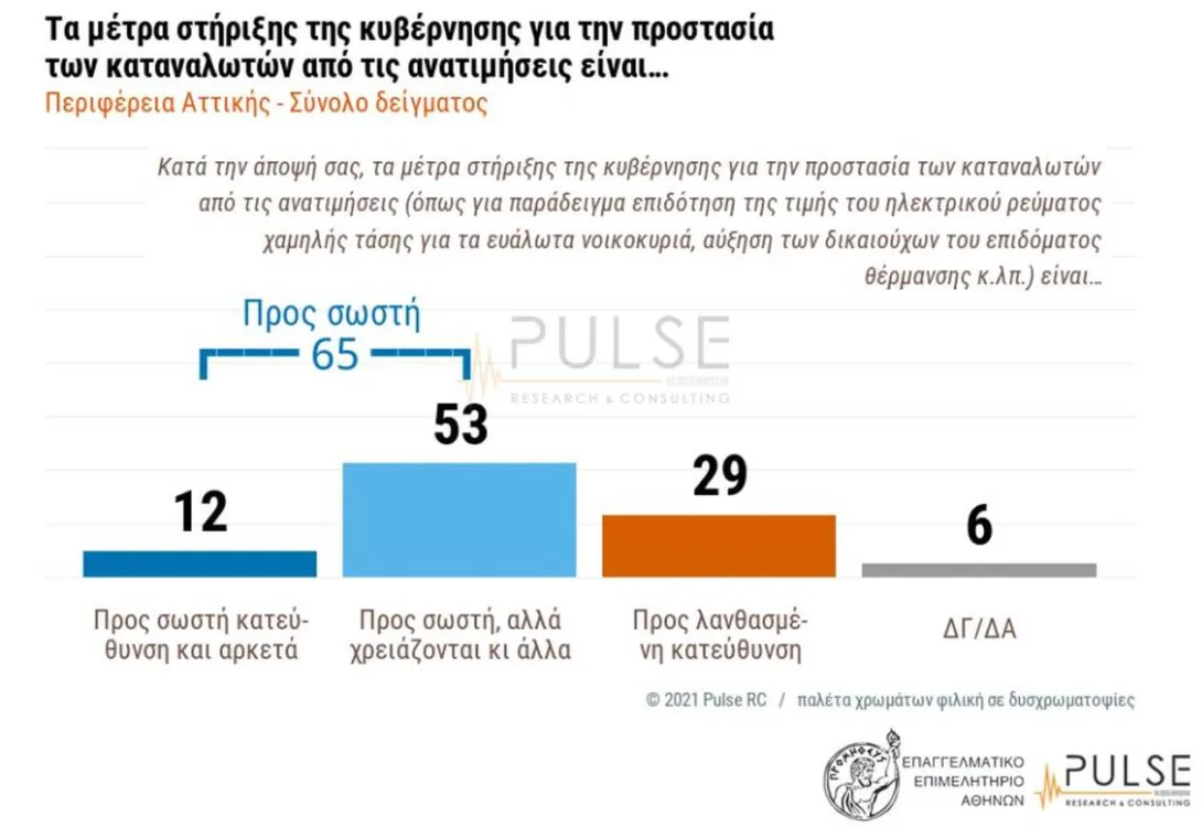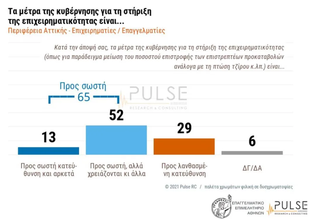 Περισσότεροι από 6 στους 10 απαντούν ότι και οι δύο πρωτοβουλίες της κυβέρνησης είναι προς τη σωστή κατεύθυνση (65% και για τα δύο πακέτα μέτρων), αλλά πάνω από τους μισούς (53% και 52% αντίστοιχα) κρίνουν ότι χρειάζονται κι άλλα.
