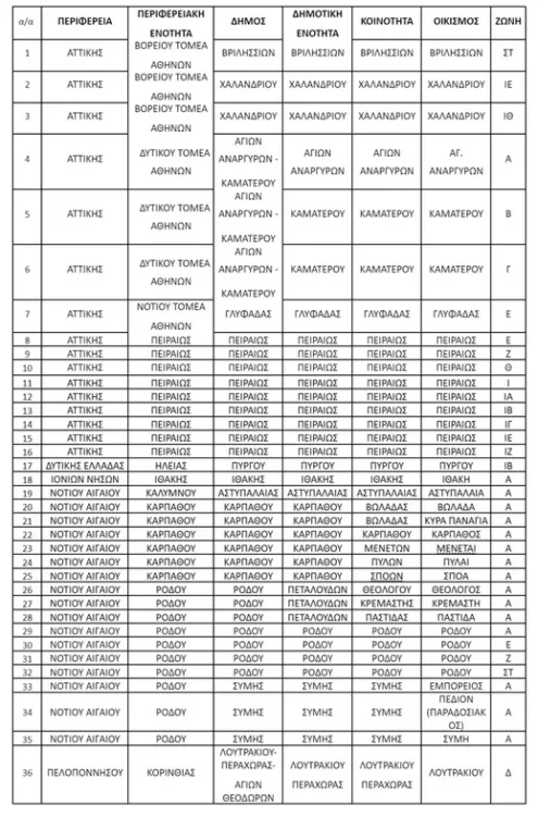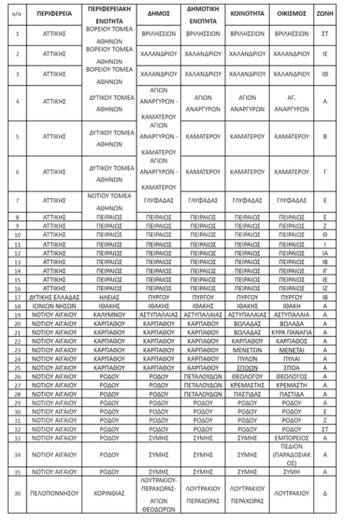 Οι οικισμοί και οι ζώνες που αλλάζουν οι τιμές της εφορίας αναγράφονται στον πίνακα που ακολουθεί.