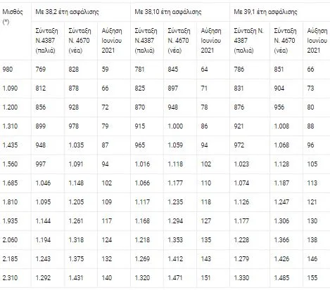 - Συνταξιούχοι με 38,2 ως 39,1 έτη ασφάλισης θα έχουν αυξήσεις συντάξεων από 57 ευρώ το μήνα ως 155 ευρώ το μήνα.