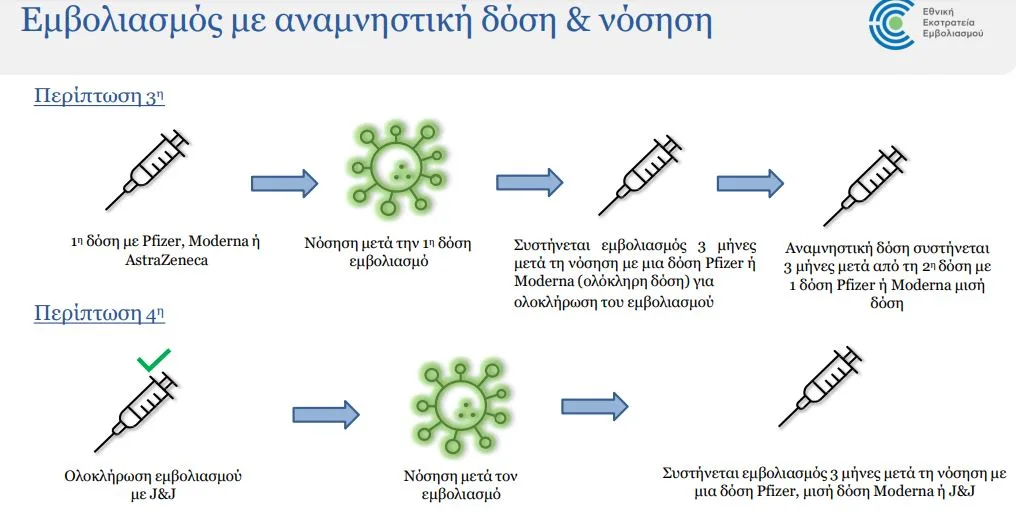 αναμνηστική δόση θα είναι με εμβόλιο Pfizer ή μισή δόση Moderna, μετά από 3 μήνες.