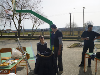 | Η ταμίας του συλλόγου Μαρία, με το σουβλάκι της σχεδόν, τελειωμένο! |