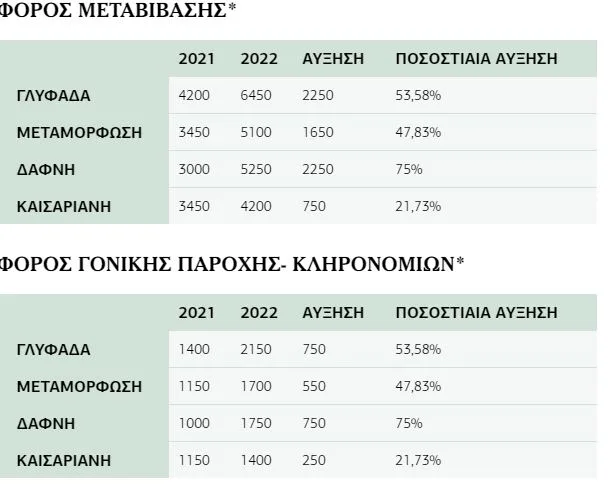 Φόρος μεταβίβασης 2022: 6.450 ευρώ (από 4.200€) αύξηση φόρου 53.58%.