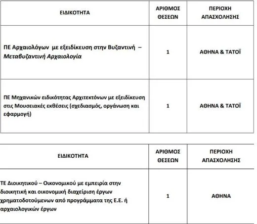 Δείτε στον πίνακα τις θέσεις εργασίας