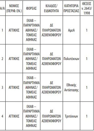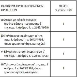 Οι θέσεις πρόκειται να πληρωθούν από πρόσωπα που προστατεύονται από τις διατάξεις του ν. 2643/1998.