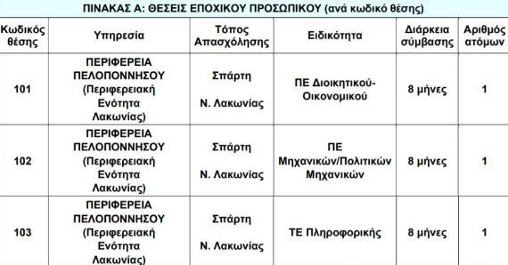 Οι προσληφθέντες θα υπογράψουν 8μηνη σύμβαση εργασίας. Προθεσμία αιτήσεων μέχρι 18 Μαρτίου.
