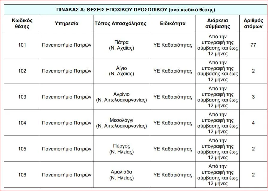 Οι θέσεις εργασίας αφορούν τις εξής περιοχές: Πάτρα, Αίγιο, Αγρίνιο, Μεσολόγγι, Πύργο και Αμαλιάδα.