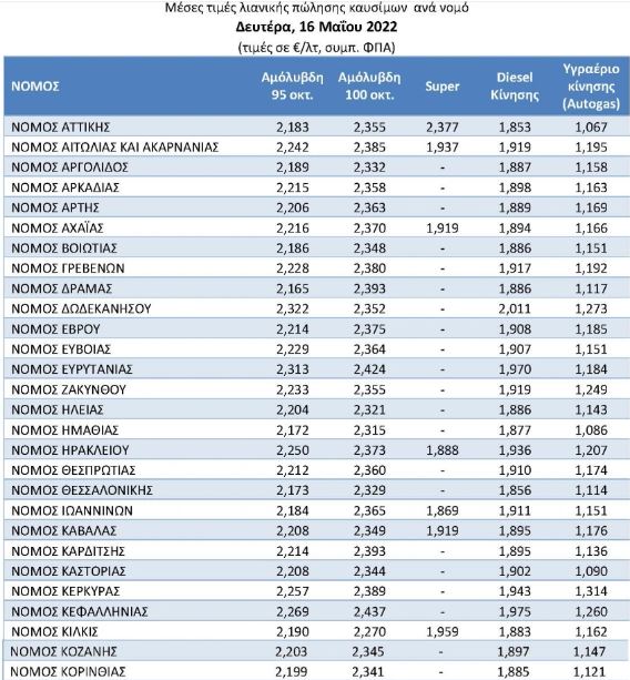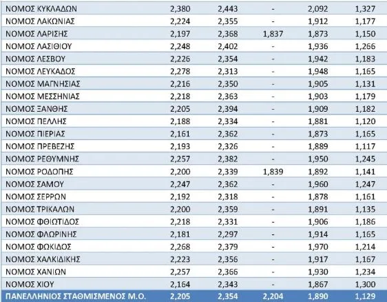 Εντονότερα είναι οι ανατιμήσεις στη βόρεια και νησιωτική Ελλάδα. Με βάση τις τελευταίες τιμές του υπουργείου Ανάπτυξης, η εικόνα ανά νομό διαμορφώνεται ως εξής: