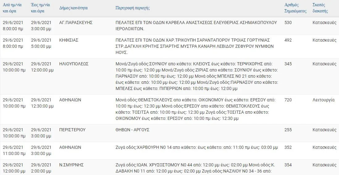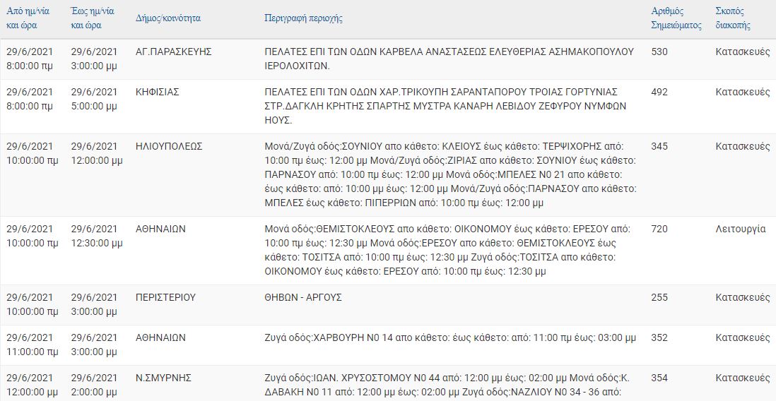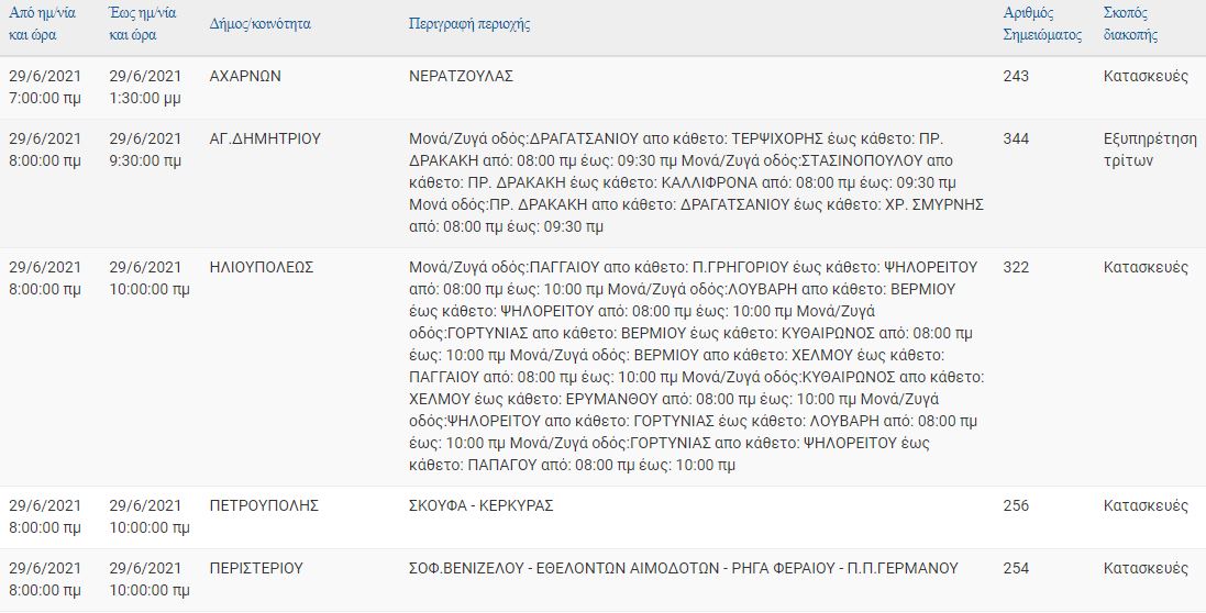Η διακοπή ρεύματος έχει προγραμματίσει για σήμερα, Τρίτη 29 Ιουνίου, ο ΔΕΔΔΗΕ, σε διάφορες περιοχές της Αττικής, στις οποίες μεταξύ άλλων περιλαμβάνεται η Βούλα, Αργυρούπολη, Ηλιούπολη, Νέα Σμύρνη, Περιστέρι, Αγία Παρασκευή κ.ά.