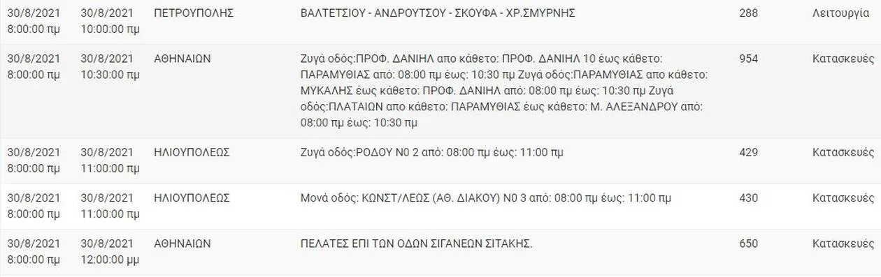 Σύμφωνα με τις ανακοινώσεις του ΔΕΔΔΗΕ, νέες διακοπές ρεύματος θα πραγματοποιηθούν σήμερα Δευτέρα 30 Αυγούστου, σε αρκετές περιοχές της Αττικής.