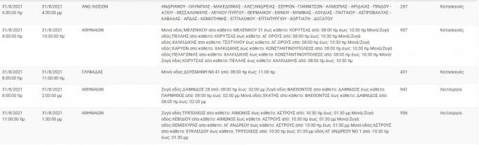 Οι διακοπές ρεύματος σύμφωνα με τις ανακοινώσεις του ΔΕΔΔΗΕ, είναι προγραμματισμένες για σήμερα, Τρίτη, 31 Αυγούστου – Περιοχές