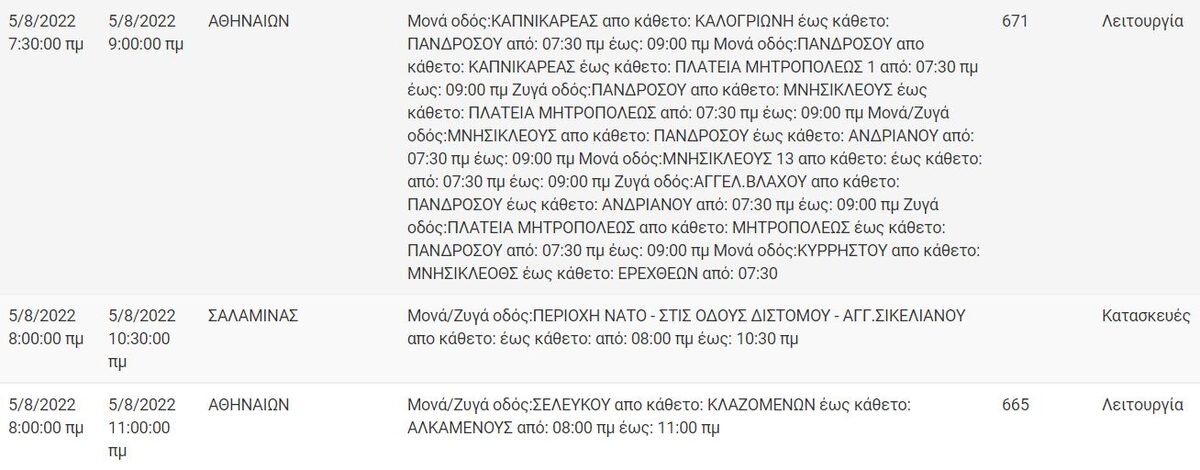 Διακοπές ρεύματος όπως αναφέρει ανακοίνωση του ΔΕΔΔΗΕ θα πραγματοποιηθούν την Παρασκευή 5 Αυγούστου, σε αρκετές περιοχές της Αττικής.