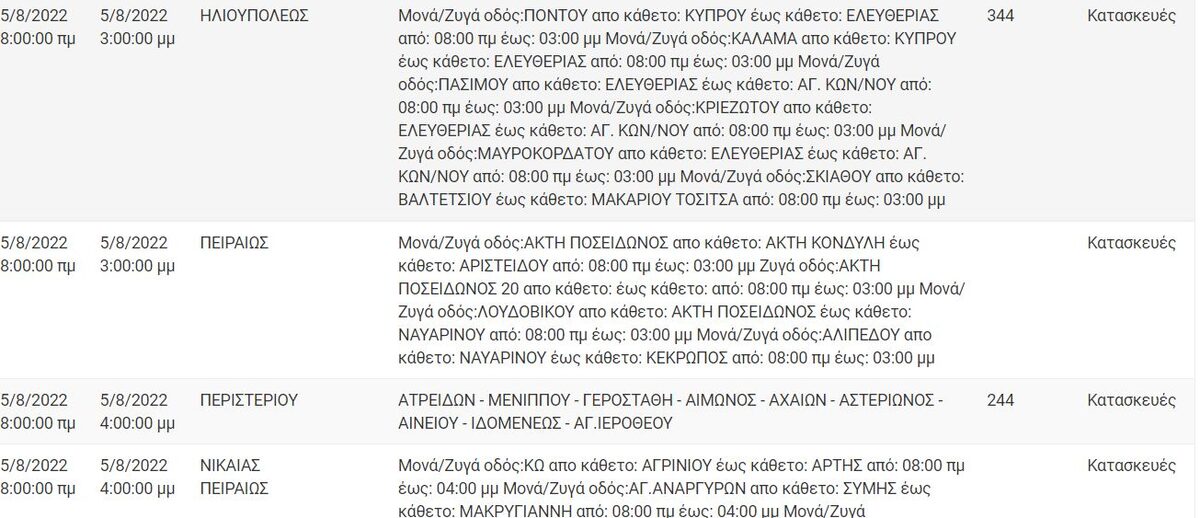 Διακοπή ρεύματος έχει προγραμματίσει για αύριο Παρασκευή 5 Αυγούστου, ο ΔΕΔΔΗΕ, σε Σαλαμίνα, Παλαιό Φάληρο, Ηλιούπολη, Πειραιά, Περιστέρι, Νίκαια, Άλιμο αλλά και περιοχές της Αθήνας.