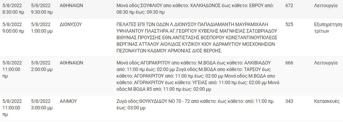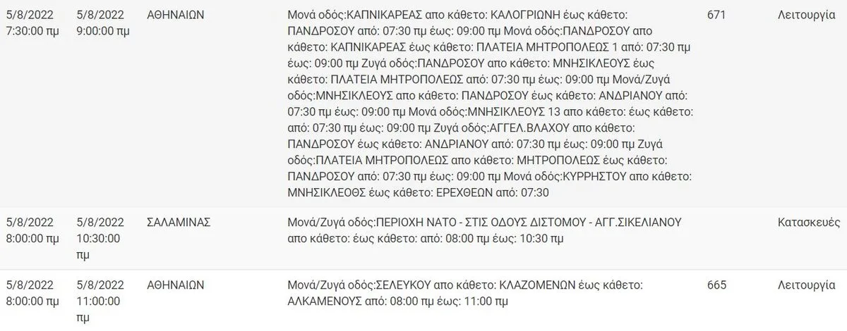 Διακοπές ρεύματος όπως αναφέρει ανακοίνωση του ΔΕΔΔΗΕ θα πραγματοποιηθούν την Παρασκευή 5 Αυγούστου, σε αρκετές περιοχές της Αττικής.