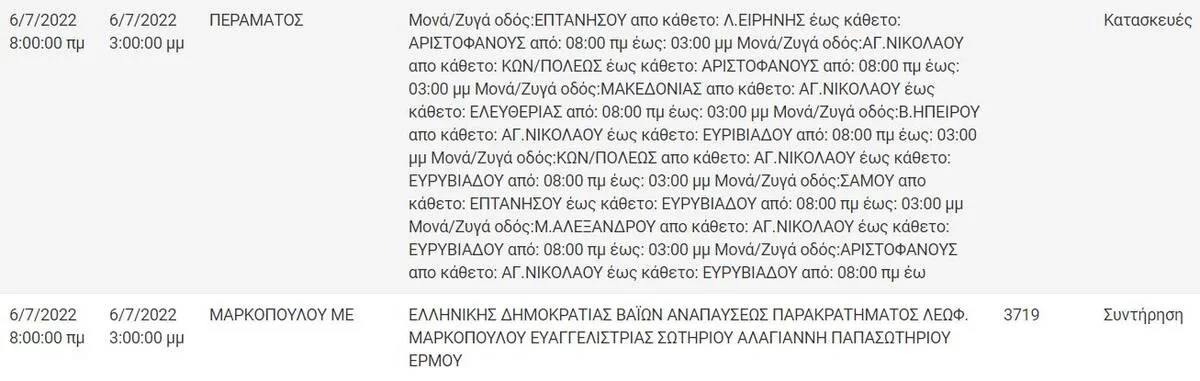 ΔΕΔΔΗΕ – Τετάρτη 6/7: Σε ποιές περιοχές και ποιές ώρες