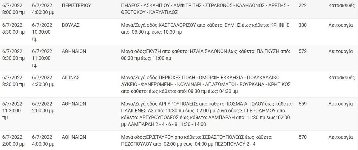 Σε επτά περιοχές της Αττικής θα σημειωθεί την Τετάρτη 6 Ιουλίου προγραμματισμένη διακοπή ρεύματος, σύμφωνα με ανακοίνωση του ΔΕΔΔΗΕ.