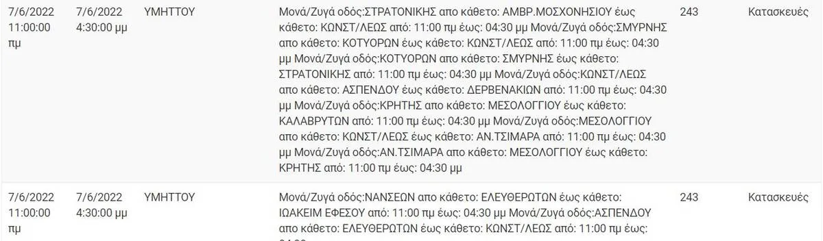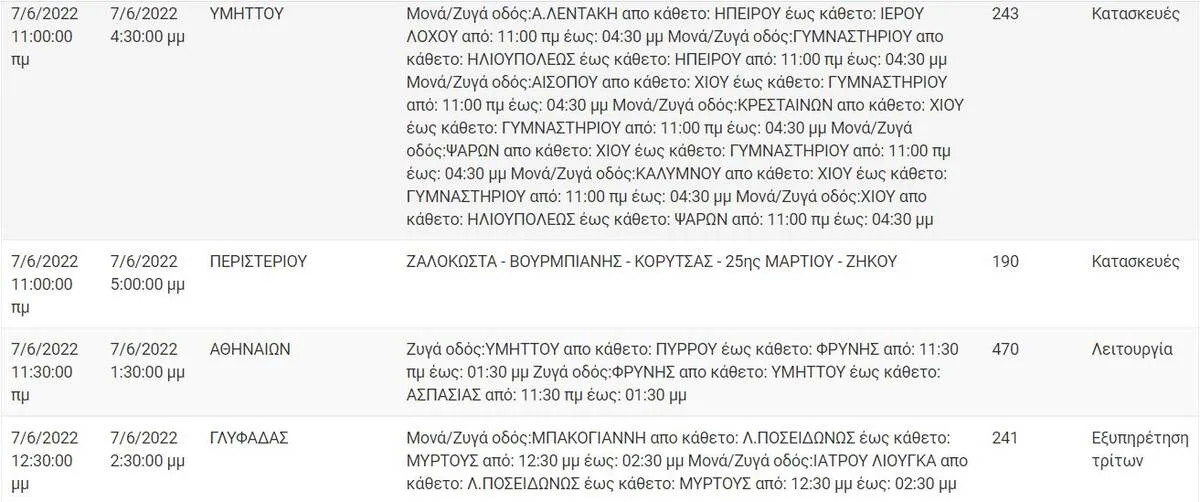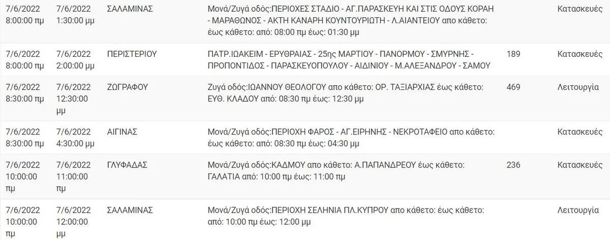 Προκειμένου να προγραμματίσετε τις εργασίες σας και να ελαχιστοποιηθεί η όχλησή σας, στον ακόλουθο πίνακα, μπορείτε να ενημερωθείτε για τις περιοχές και τις ώρες προγραμματισμένων διακοπών ηλεκτροδότησης» αναφέρει ο ΔΕΔΔΗΕ.
