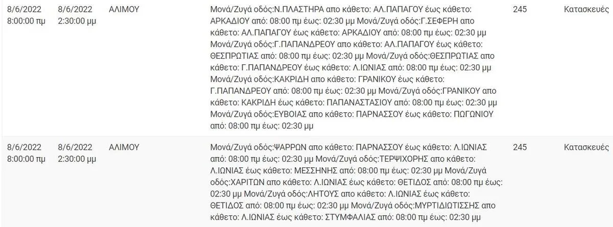 Αναλυτικά οι πίνακες με τις περιοχές: