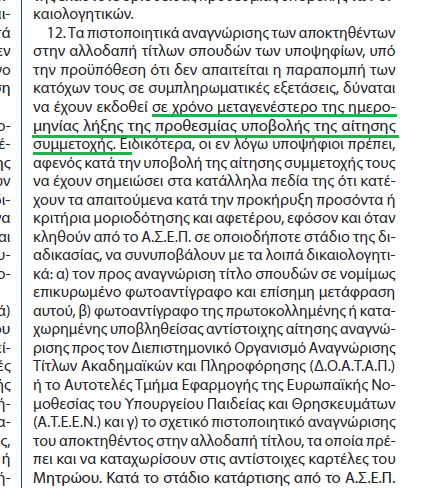Σύμφωνα με το workenter, οι πτυχιούχοι αυτοί θα πρέπει να δηλώσουν στην αρχική αίτησή τους ότι διαθέτουν αναγνώριση του τίτλου τους και να την προσκομμίσουν αργότερα στο στάδιο της υποβολής δικαιολογητικών.