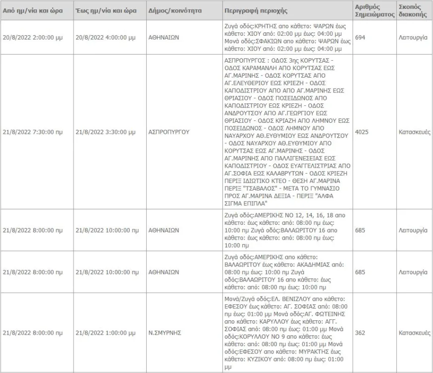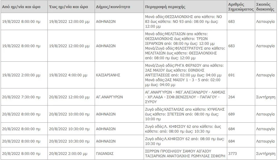 Οι διακοπές ρεύματος στην Αττική το Σαββατοκύριακο