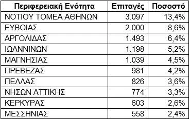 Δείτε τις 10 περιφερειακές ενότητες με τον μεγαλύτερο αριθμό ενεργοποιημένων επιταγών τον περασμένο μήνα:
