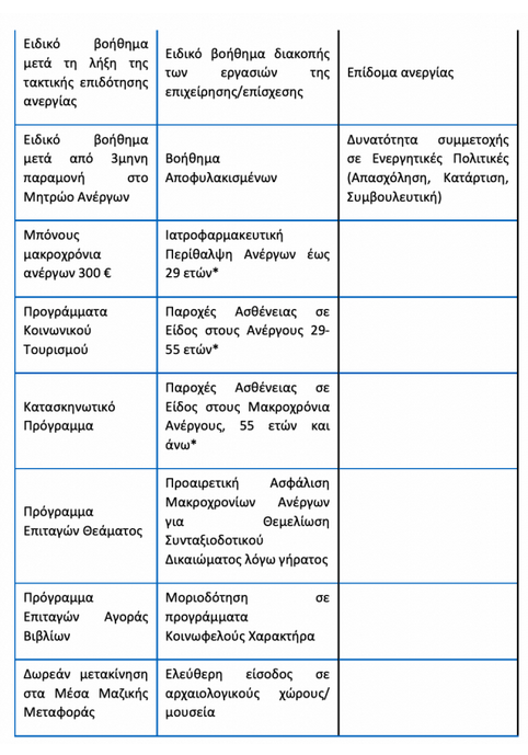 Προβλέπεται η καταβολή εφάπαξ χρηματικής παροχής, ύψους 300 ευρώ, στους μακροχρόνια (πάνω από πέντε χρόνια) ανέργους που καταρτίζουν Ψηφιακό Ατομικό Σχέδιο Δράσης, ενεργοποιώντας έτσι έμπρακτα την αναζήτηση εργασίας.