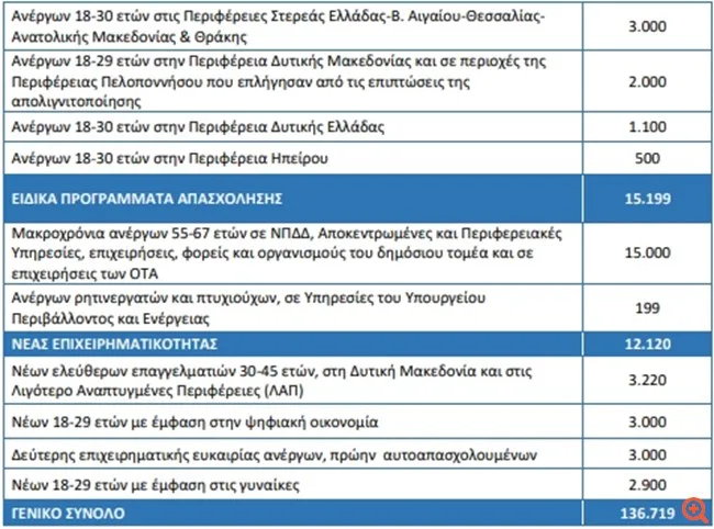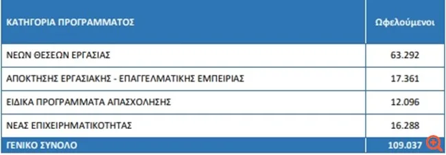 Κατά συνέπεια, την περίοδο αναφοράς έχουν ωφεληθεί συνολικά 109.037 άνεργοι, όπως φαίνεται στον πίνακα που ακολουθεί.