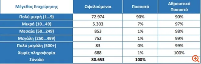 Ωφελούμενοι ανά Μέγεθος επιχείρησης (σε σχέση με τον αριθμό απασχολούμενων)
