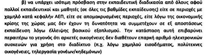Θεωρούμε ότι είναι ντροπή για το υπουργείο να παίζει επικοινωνιακά παιχνίδια πάνω στην πλάτη των οικογενειών που πλήττονται από την πανδημία και εύλογα αγωνιούν για την εκπαίδευση των παιδιών τους. Η ΟΛΜΕ και η ΔΟΕ οφείλουν αμέσως να δώσουν συνέντευξη τύπου για να καταγγείλουν την κατάπτυστη στάση του ΥΠΑΙΘ και να απαιτήσουν τη χορήγηση του απαιτούμενου εξοπλισμού σε όλα τα παιδιά και σε όλους τους εκπαιδευτικούς ως βάση για την καθολική πρόσβαση στο αγαθό της ενημέρωσης της επικοινωνίας και της μορφωτικής και πολιτιστικής δραστηριότητας.