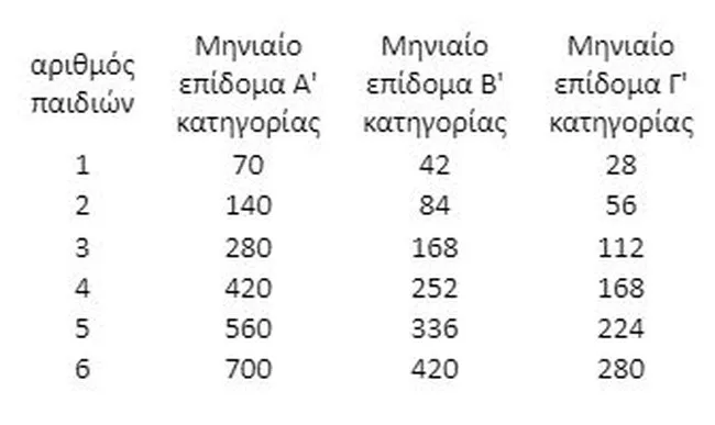 Το ύψος των επιδομάτων διαμορφώνεται με τα σημερινά δεδομένα ως εξής: