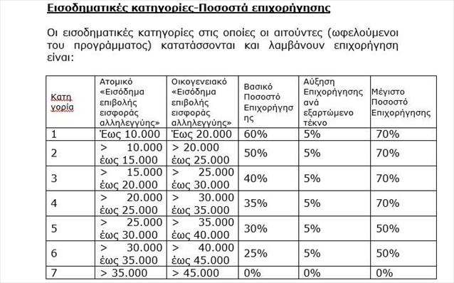 Η επιχορήγηση του προγράμματος θα δοθεί με βάση τα εισοδηματικά κριτήρια του φορολογικού έτους 2018 (εκκαθαρισμένες δηλώσεις φορολογίας).