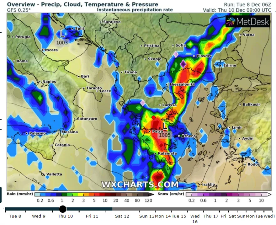 Μέχρι τα μέσα του μήνα θα συνεχίσουν να μας επηρεάζουν τα χαμηλά που θα έρχονται από την κεντρική Ευρώπη και την κεντρική Μεσόγειο, ενώ αυτή η κυκλοφορία πρόσκαιρα θα διακοπεί στο χρονικό διάστημα 15 με 20 Δεκεμβρίου από ένα block που θα αναπτυχθεί στη Βόρεια Βαλκανική και τα κεντρικά της Ευρώπης.