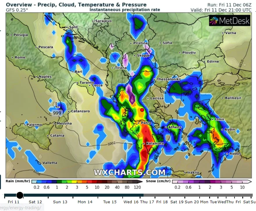 – Σήμερα Παρασκευή από αργά το απόγευμα τα νησιά του Ιονίου, την Ήπειρο, τη δυτική Στερεά, από το βράδυ την Πελοπόννησο και κατά τη διάρκεια της νύχτας προς το Σάββατο την Αττική. Από τις πρωινές ώρες του Σαββάτου και από τα βορειοδυτικά τα φαινόμενα θα εξασθενήσουν.