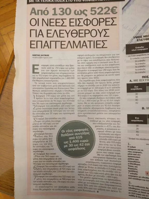 7. Εισφορά 6ου επιπέδου στα 522 ευρώ τον μήνα που επιμερίζεται σε 386 ευρώ για τον κλάδο σύνταξης και 136 ευρώ για υγειονομική περίθαλψη.
