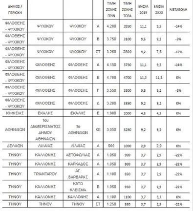 Λόγω αυτού του δεδομένου, η ΑΑΔΕ καλείται να λάβει υπόψη τις νέες τιμές κατά την φετινή εκκαθάριση του ΕΝΦΙΑ δεδομένου ότι αυτή γίνεται βάσει της αξίας που είχε το κάθε ακίνητο κατά την 1η Ιανουαρίου του 2020. Ο κατάλογος με τις αλλαγές στις τιμές ζώνης, περιλαμβάνει και αυξήσεις και μειώσεις στην τιμή ανά τετραγωνικό μέτρο. Ωστόσο, ο αντίστοιχος κατάλογος με τις μεταβολές στον ΕΝΦΙΑ, περιλαμβάνει μόνο μειώσεις.