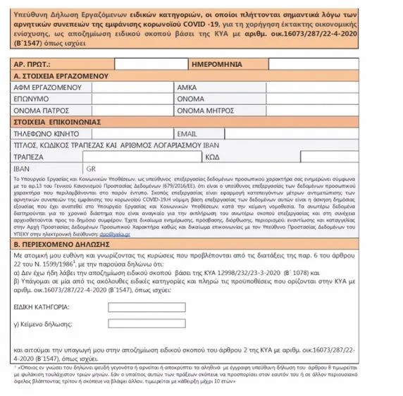 Οι ειδικές κατηγορίες εργαζομένων υποβάλλουν την ακόλουθη ψηφιακή υπεύθυνη δήλωση στην ηλεκτρονική πλατφόρμα :