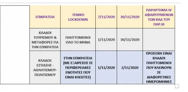 Η διαφορά με άλλους μήνες είναι πως ειδικά για τον Νοέμβριο η ημερομηνία έναρξης του χρονικού διαστήματος της αναστολής – από το οποίο εξαρτάται και το ύψος της ειδικής αποζημίωσης – ποικίλλει ανάλογα με τις διαφορετικές ημερομηνίες έναρξης των έκτακτων περιοριστικών μέτρων ανά :