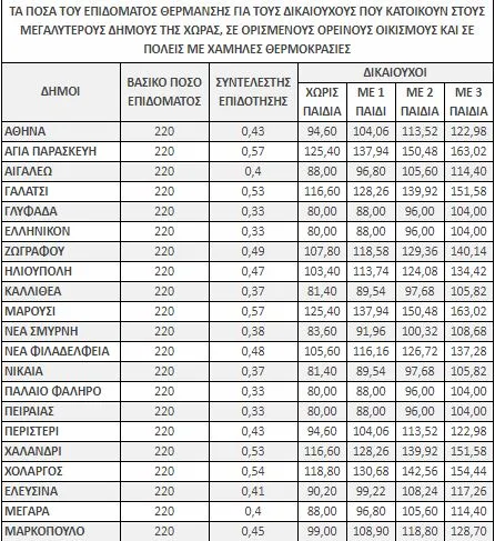 Επίδομα θέρμανσης: Αναλυτικά οι πίνακες με τα ποσά
