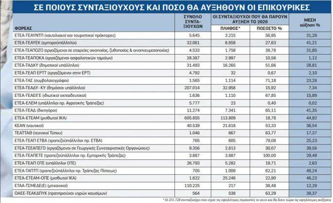 Επικουρικές συντάξεις 2020 : Ποιοι θα πάρουν αύξηση : ΠΙΝΑΚΑΣ -ΑΥΞΗΣΕΙΣ