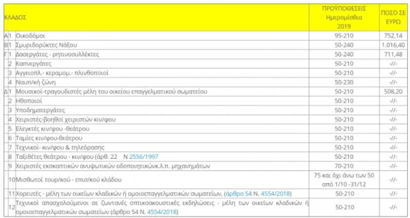 Τα ημερομίσθια που έχουν τυχόν πραγματοποιήσει σε άλλους κλάδους κατά το 2019 να μην είναι περισσότερα απ’ αυτά που πραγματοποίησαν στον επαγγελματικό κλάδο ως μέλη του οποίου ζητούν το βοήθημα.