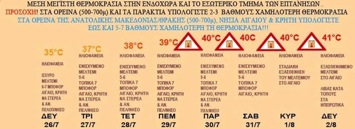 – Να είναι ιδιαίτερα προσεκτικοί ώστε να αποφευχθούν προβλήματα υγείας, όπως θερμική εξάντληση και θερμοπληξία, που μπορεί να προκληθούν εξαιτίας των πολύ υψηλών θερμοκρασιών που θα επικρατήσουν