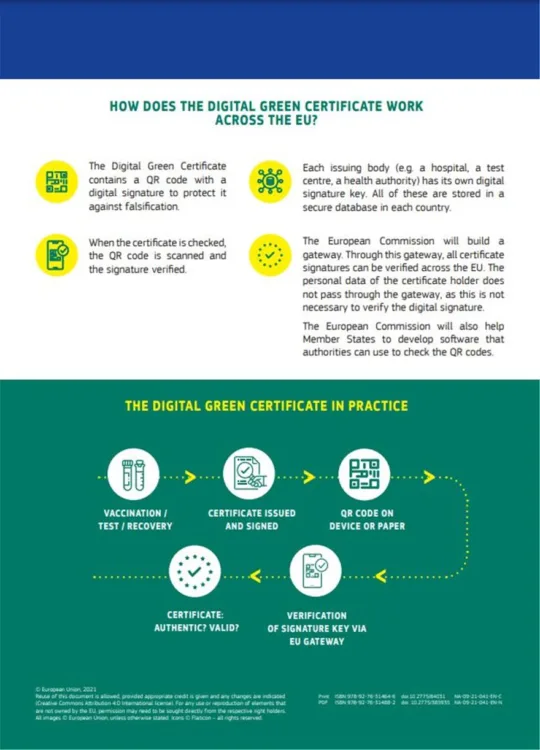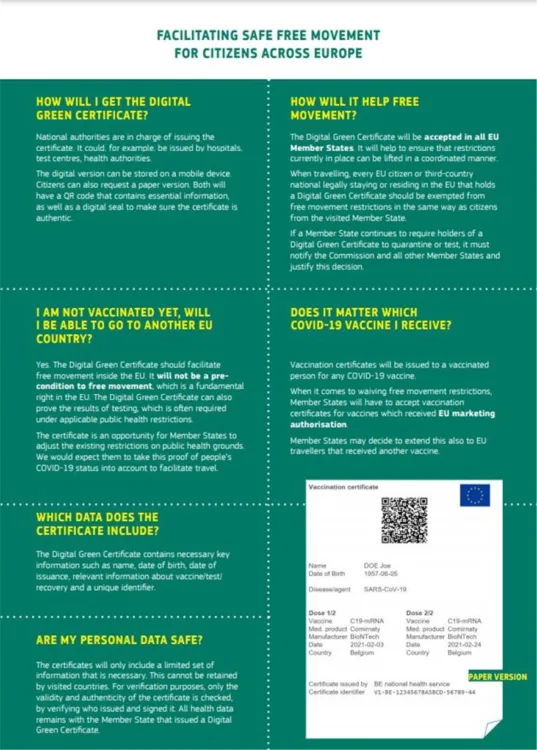 Το εκτελεστικό όργανο της ΕΕ αποφάσισε να δεχθεί την ιδέα ενός πιστοποιητικού εμβολιασμού καθώς η αδυναμία των κρατών – μελών να εναρμονίσουν τις πολιτικές τους για τους περιορισμούς που επέβαλαν στα εσωτερικά σύνορα της ΕΕ ανάγκασε την Ευρωπαϊκή Επιτροπή να μην εκδώσει απλώς μία σύσταση αλλά να υποβάλει κανονισμό. Δηλαδή μια δεσμευτική νομοθετική πράξη η οποία όταν και εφόσον εγκριθεί από τα δύο νομοθετικά όργανα της ΕΕ, ήτοι Συμβούλιο και Ευρωπαϊκό Κοινοβούλιο, θα εφαρμόζεται υποχρεωτικά σε όλα τα κράτη – μέλη της ΕΕ.