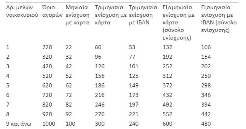 Πρόκειται για ελάχιστες περιπτώσεις. Για να βγουν 100 ευρώ ενίσχυση για έξι μήνες (σύνολο 600 ευρώ) θα πρέπει να έχει μια οικογένεια από 9 μέλη και άνω!