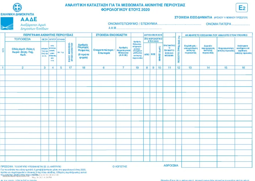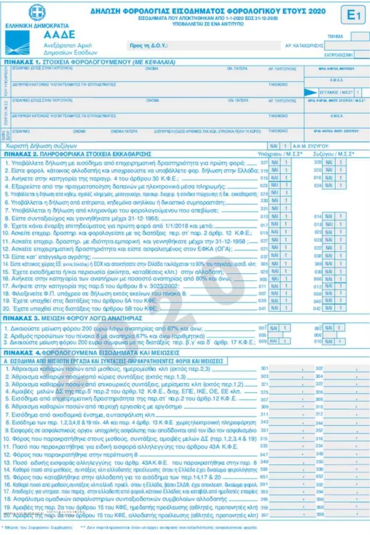 Φορολογικές δηλώσεις: Στα νέα Έντυπα Δήλωσης Φόρου Εισοδήματος (Ε1, Ε2 και E3) υπάρχουν ειδικοί και ρυθμίσεις για εισοδήματα και παροχές του 2020.