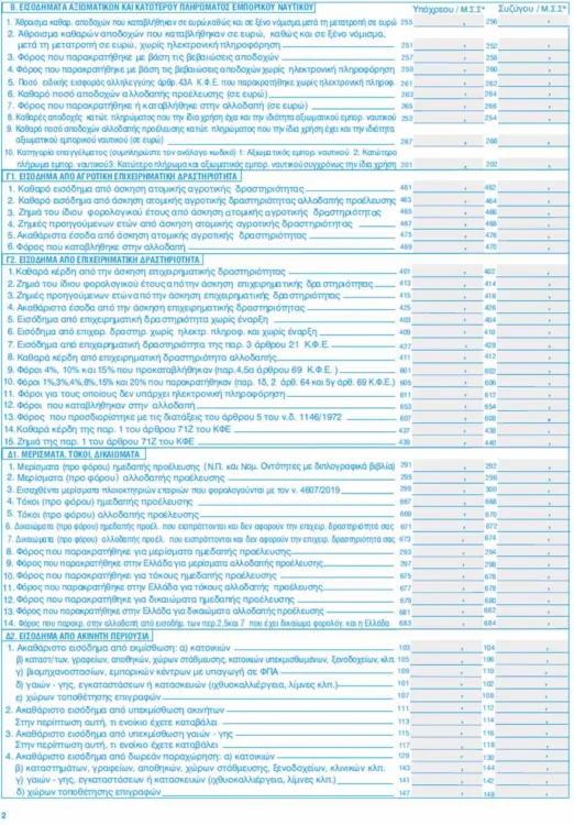 Εκεί, ανάλογα αν ο φορολογούμενος είναι μισθωτός ή ασκεί επιχειρηματική/αγροτική δραστηριότητα, αναγράφονται ενδεικτικά: