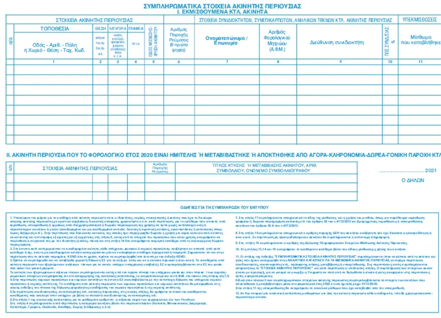 Στον Πίνακα 4Δ2 για τα εισοδήματα από ακίνητα, τονίζεται πως «στο εισόδημα από ακίνητα δεν περιλαμβάνεται το ποσό του μισθώματος που δεν εισπράχθηκε για όλους τους μήνες που ίσχυσε εντός του 2020 το μέτρο μειωμένης καταβολής επί του μηνιαίου μισθώματος», στο πλαίσιο αντιμετώπισης των επιπτώσεων του κορωνοϊού COVID-19.