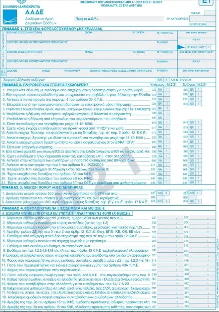 Φορολογικές δηλώσεις: Το νέο έντυπο Ε1, περιλαμβάνει αλλαγές για όσους εργαζόμενους θα μεταναστεύσουν φορολογικά στην Ελλάδα, σε όσους κατέγραψαν ζημιές μέσα στο 2021 αλλά και όσους πληρώνουν ενοίκια.
